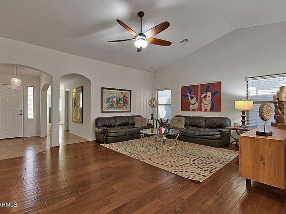 Amazing Mountain Views, single level open concept home in the highly desired Desert Peak Community. Walk in pantry, kitchen island, granite countertops and stainless appliances. Large walk in closet in the main bedroom. Main bath has dual sinks and separate tub and shower. Split floor plan, with large living, kitchen and dining space. Brand new water heater. Close to Desert Ridge Shopping and dining. Also close to the 101 and 51.