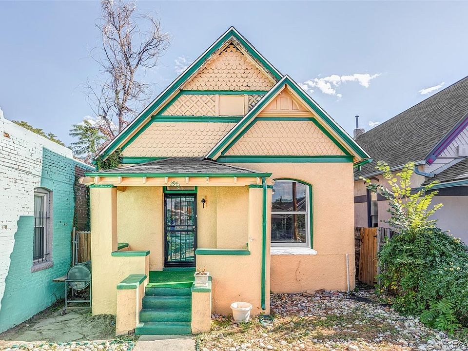 Classic charm beams throughout this Five Points residence. A covered front porch invites entry further inside through a unique front door with stained glass into an open floorplan. Crisp white wall color provides a neutral backdrop for a variety of personalized design possibilities. Large windows draw abundant natural light into a living area crowned by a contemporary light fixture. The layout continues through an arched doorway into a light-filled dining room — the perfect setting for hosting at-home soirees. A spacious kitchen features abundant cabinetry and a neutral tiled backsplash. Two bright bedrooms are complemented by a shared bathroom. Generous storage throughout offers room for keeping and organizing home essentials. An attached small ADU presents possibilities for a private home office, guest accommodation or rental income potential with U-RH-2.5 zoning. An ideal location affords close proximity to RiNo with endless options for shopping, dining, entertainment and more.