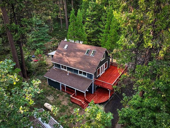 Seller is open to an owner financing scenario with 5% interest rate (APR), 20% down, payment amortized over 30 years, but balloon due in 10 years (buyer to refi into a new loan/lender/payoff at year 10 or before). If you are looking for an updated cabin to bring the extended family to, seize this unique opportunity. In fact, this would be the perfect place if 2 families were going in together with its' 2 full kitchens, 3 distinct levels that sleep up to a total of 10, sizable upper and lower decks to enjoy the towering pine forest and you'll absolutely love the bright rustic modern vibe with a little twist of Scandinavian charm from the light wood tones. This is all sitting on 1.1 acres bordering large acreage on one side, easily accessed on a lightly sloped, newly paved private road leading you to your circular driveway set back into the forest. Store all your recreational toys in the 2 ample-sized sheds in between your outdoor adventures in the Sierra's. Other perks include zonal mini-split system throughout including A/C, on instant hot water taps in kitchens, electric fireplace, luxurious bidet toilets in both bathrooms, EV charger, pool table, and outdoor fire pit. The cabin has been operating as a vacation rental for the past year grossing just over 50k. Much of the furniture and housewares convey, exclusion list available. Not part of a subdivision and no HOA.