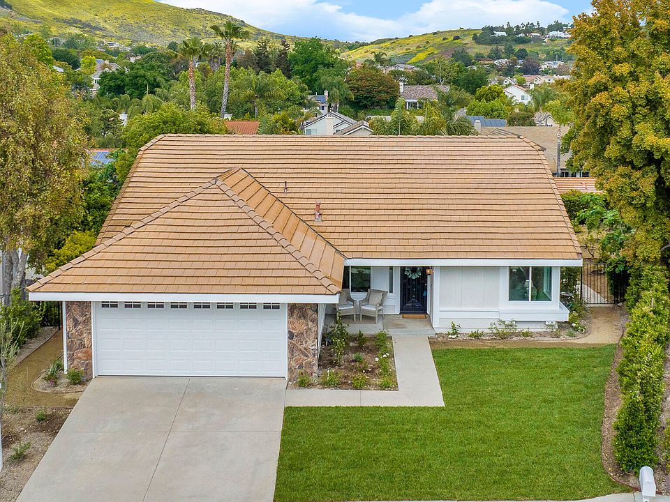 Welcome home to this beautiful single story property situated in the desirable Conejo Valley surrounded by rolling hills offering lovely views! Step inside this exceptionally remodeled 4 bedroom/2 bath family home, where every detail exudes luxury with a touch of Joanna Gaines' signature style. Guests are welcomed into the space with sweeping wood-like flooring throughout, soaring ceilings, neutral color scheme, beautiful textures and tons of windows allowing it to show light and bright!! The completely remodeled gourmet kitchen provides the perfect blend of beauty & function. Gleaming quartz countertops & Santa Barbara tile catch your eye while the ample cabinetry with pull-outs offer convenience! Open floor plan design at its finest featuring a living room and dining room that seamlessly open to a gorgeous kitchen that overlooks the tranquil rear yard. Master retreat is spacious and grand while still offering a warm and cozy atmosphere. Spa-style bathroom with sunken tub, dual Kohler sinks, designer hardware, vintage tile all add a stylish twist with the latest luxurious finishes. The interior also boasts fresh interior paint, new baseboards, LED canned lighting, designer chandeliers/lighting, LGE appliances, new garage door, new Anlin windows & French sliders, new carpeting, mirrored wardrobes & large secondary bedrooms (one currently acting as an office). The new HVAC system guarantees comfort.
