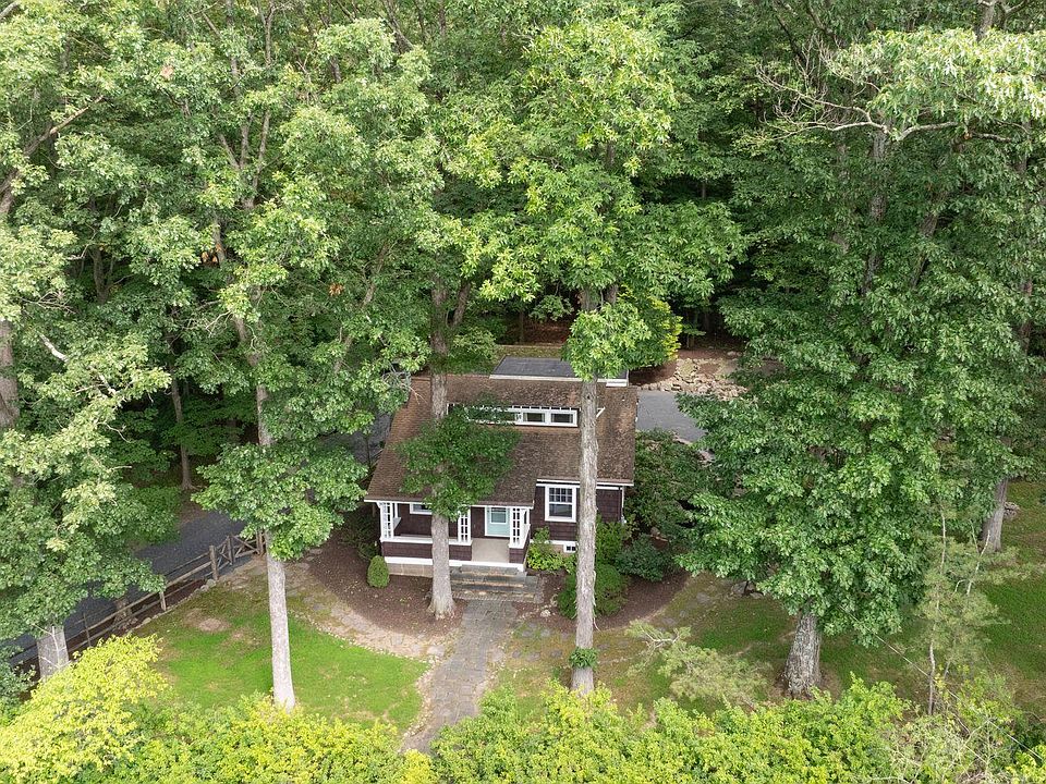 Nestled in a natural rural setting, this charming 1938 Arts and Crafts style bungalow offers a perfect blend of classic character and modern comfort. The park-like setting and Japanese-inspired cottage garden is tranquil and serene. The covered front porch welcomes you to step inside and discover a warm and inviting interior featuring solid hardwood floors, wainscoting, exposed beams and high ceilings. The bright living room is anchored by a wood-burning fireplace with hand-carved oak surround and mantel, perfect for gathering on chilly evenings, and flows nicely to the formal dining room with charming built-in corner cabinet. The country kitchen is efficient with built-in appliances, including a microwave and electric range, and substantial storage with period built-ins and traditional cabinetry. With three bedrooms and two full baths, including a primary bath with jetted tub, this home is designed for relaxation. Ample storage is provided by built-ins and large walk-in cedar closet, ensuring everything has its place. Outside, the expansive 0.84-acre lot features extensive hardscaping, a charming pond, gravel terrace and ipe deck, all surrounded by lush greenery and mature trees. Enjoy peaceful views of the garden and scenic vistas from the deck or patio, perfect for outdoor entertaining or quiet reflection. Located in a highly desirable area, this property offers the best of rural living while remaining close to local amenities. With a detached garage and carport, parking is a breeze. Experience the comfort and charm of this delightful home, where every detail invites you to relax and unwind.