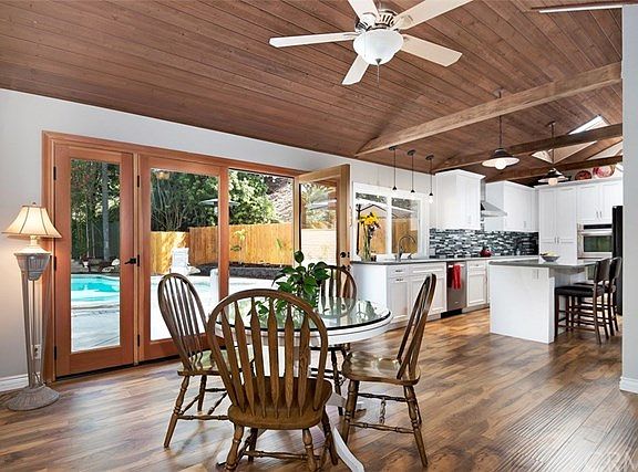 Looking for Privacy? Looking for a Large Lot? Looking for a remodeled home? Looking for a Single Story Home, with 4 Bedrooms and Bonus Room and Pool and Spa? Look no more. This fabulous ranch home has been remodeled from top to bottom and is an entertainer's choice for indoor and outdoor living. Designer touches including the exposed beams, wood vaulted ceilings with a unique combination of modern and trendy looks from lighting to glass back splash in the fabulous kitchen. The sit down Center Island is just another plus on your list. Now you can be part of the living area with the open to living and dining areas and bonus room. The wood burning fireplace is located both in the living room and bonus room for romantic winter nights. This customized ranch is so warm and inviting that you won't want to leave. With 4 bedrooms, updated remodeled bathrooms and laundry you won't want for any more in your next home. Other touches include crown molding, inlaid tile flooring and walls in both bathrooms, mirrored closed doors, french doors, walkout to patio from the master bedroom and a complete private and 2018 remodeled resort style yard. The bonus room has an exterior exit and sink and is perfect for an at home business that you want to keep separate from your living area. New California Room patio cover provides plenty of shade and light to enjoy the day into night, plus an outdoor heated shower! New HVAC, LED lighting throughout, Media Tech Center wired to all rooms with lots of smart home features, Solar Tubes, whole-house water filter/softener, and a custom built garage with huge attic. Control most of the house and pool/spa from your phone!