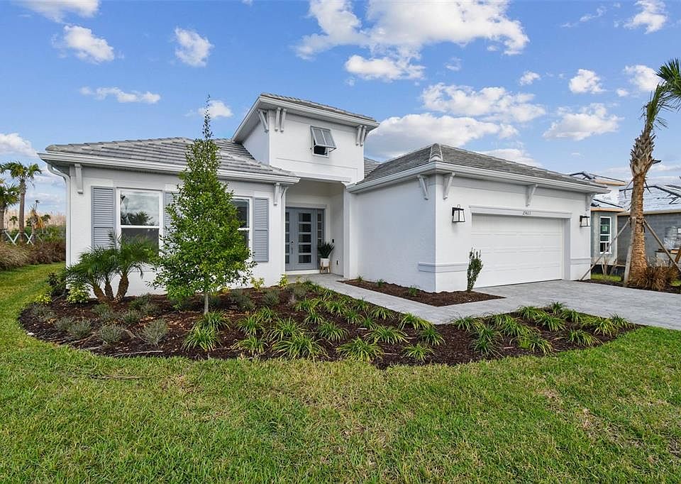 Welcome home! Now is the time to begin enjoying the unparallel living experience in the Esplanade of Wiregrass Ranch, the most sought after gated 55+ community in Wesley Chapel. This stunning, better than new home is only a few months old and boasts 3,004 SF, 3 bedrooms, 3 baths, an office/flex room, 2 car oversized garage as well as a saltwater spool. As you enter, you will notice the captivating fusion of opulence and costal charm along with designer touches from the front doors to the openness of this grand Pallazio floorplan. Everything feels grander, from the soaring double trey ceilings with crown molding to the wider pathway bathed in natural light to an enormous kitchen/great room combination. The kitchen features a huge quartz island with designer light pendants, stainless steel Café appliances including a gas five burner cook top, built in walk-in pantry, farm sink and, under cabinet lighting. The extended eat in kitchen has glass front cabinets, coffee bar area, and a wine refrigerator providing ample space for entertaining. The expanded primary bedroom has a large sitting area, trey ceiling with crown molding. As you walk through the double doors to the ensuite bath you will notice the large walk-in rain-fall shower and handheld wand, dual sinks with quartz counter, and an expansive fully built-out custom walk-in closet. The second bedroom has an ensuite bathroom while bedroom three is light and airy, with a pocket door providing the privacy of an ensuite bath. The large laundry room has a custom floor as well as cabinets with ample space for folding clothes. Flex/office room is airy and has French doors. This residence is a testament to the owner’s meticulous eye and thoughtful details. Upgrades include but are not limited to premium ceramic plank tiles throughout, extensive crown molding, tankless water heater, custom closets, bathroom tile to ceiling, reclaimed water sprinkler system, gutters with drains, prewired for speakers in Great room and lanai, wi-fi extender, upgraded landscaping, custom designer lights throughout, and an oversized extended garage with epoxy floors. Your entertaining space is enhanced by a pair of fully pocketing sliding glass doors opening to an extended lanai that has been pre-plumbed for an outdoor kitchen. Custom heated saltwater spool has multiple jets and is five foot deep. The dual invisible waterfalls flow over a custom stone wall providing for a wonderful focal point on the extended paver screened lanai. The Venue includes a resort style pool, hot tub, cabanas, dog park, state-of-the-art 24-hour fitness center, billiard/card room, and spa rooms. For active outdoor entertainment there is a firepit, tennis, pickleball, and large meeting/gathering area. This home is located only minutes from shopping, I-75, hospitals, restaurants, recreation, and entertainment. Come see for yourself this exquisite residence that you will be proud to call home! Please see walk through website and Matterport 3D tours.