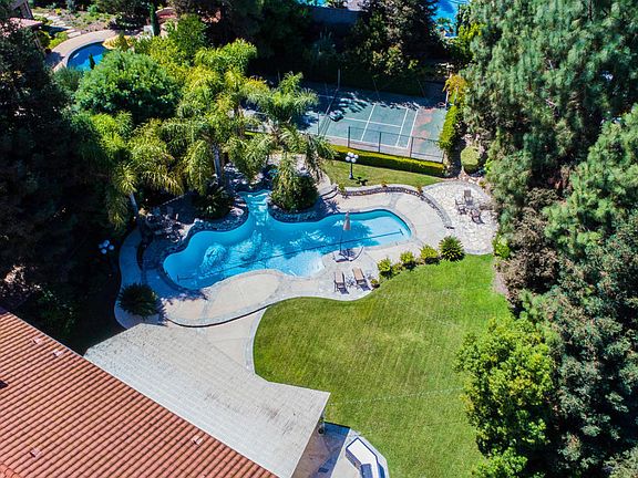 Incredible Customized Morrison Ranch Highland 1007,quiet cul-de-sac w/long private driveway. Elegant foyer w/high ceilings along w/adjacent living room, open voluminous floor plan & many features: living room leads to formal dining room w/direct access remodeled kitchen; 6 bdrm, 4.5 baths, spiral staircase, library loft; quality wood & tile flooring; extensive recessed lighting; 3 fireplaces. Remodeled kitchen offers granite, updated appliances, central island w/sink, separate bright nook area, French door leads to bkyd. Family room w/central fireplace, coffee bar, French doors leads to bkyd. Master bedroom has entry sitting/office/retreat, plush carpeting, recessed lighting, plantation shutters, views of backyard & surrounding mountains, dual faced fireplace. Remodeled master bathroom w/double sinks, spa tub, large shower w/double showerheads, 2 walk-in closets. Dream entertainers backyard features: lush grassy area, covered patio, built in BBQ; approx. 60 foot long pool for swimming laps; large elevated tiled spa w/water cascading down upon the pool; privacy is enhanced by many surrounding trees (including fruit trees and a charming tree house); a sport court for basket ball, paddle tennis, and volley ball; and an external speaker system.