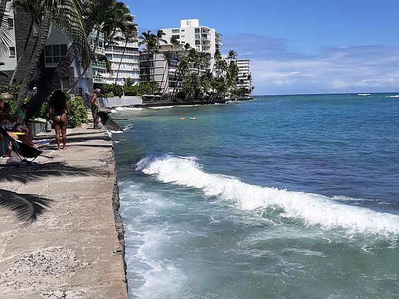Small Complex right on the water in Diamond Head, with great oceanfront patio with its own chairs and table..the perfect spot to watch another great Oahu Sunset. Upscale and private area on the 'gold coast.' This is the 'Tropic Seas" condo complex, very friendly vibe. Swimming, Surfing, Sup - right off the property!
