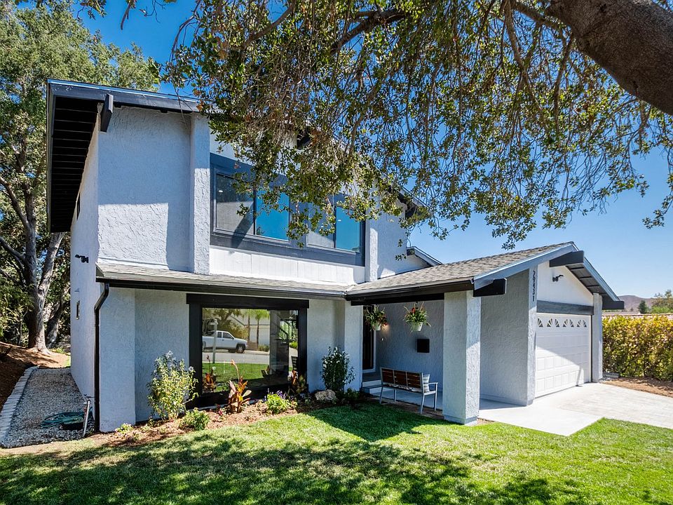 Nestled in a quiet Agoura Hills neighborhood stands this 4-bedroom, 3-bathrom fully renovated and modernized custom home, with 1 bedroom/office and full bathroom on the first floor and 3 bedrooms including main bedroom on the second floor. The residence is heavily influenced by craftsman style with its classic gable roofs, columnated covered entry with tile flooring, prominent raised hearth fireplace and a wealth of storage. Custom pavers for the driveway and fully landscaped front lawn radiating curb appeal lead to your main entrance and an oversized 2 car garage with laundry connects. The double door entry opens upon a vast 1,972-sqft of living space with craftsman workmanship throughout. The interior floorplan heralded by a step-down living room that introduces the classy fit in finish inclusive of recessed lighting and rich SPC flooring that runs through every room of the house. An oversized picture window floods the formal living room with natural lighting; a theme carried through all the home's rooms. The pristine gourmet kitchen offers glossy purity in its quartz countertops and spotless custom crafted cabinetry. Easy on-the-go convenience and lively soirŽes alike are served up by the lengthy center island that doubles as a breakfast bar with state-of-the-art built-in appliances inclusive of a 3' 5-burner THOR gas range, and Viking refrigerator and dishwasher. The primary bedroom on the 2nd floor includes a generous walk-in closet with custom built-ins and an ensuite bathroom complete with twin vanity accessed through a fashionable barn door entry. The finishing touch is a private wooden balcony overlooking the huge backyard and private view of your own forested area. Downstairs, a living/family area looks out upon the verdant greenery of the backyard. Distinguished by a cheerful raised hearth fireplace, the second living area offers the added distinction of a textured, patterned wall of interlocking circles and backyard access through sliding glass doors. Much of the home's 6,736-sqft lot is dedicated to the backyard, where the pavers are continued covered by its own gorgeous pergola. With a shifting terrain of green hills and mulch beneath swaying pastoral trees, it's like a private countryside. Part of the Las Virgenes School District. Close to CVS, Ralph's, Von's, Starbucks, parks, and 101-freeway access. Must tour - it will not last long.