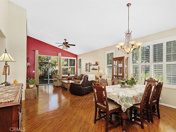 Opportunity abounds in this ever POPULAR COZUMEL Floor Plan in the 55+ Gate Guarded Community of the OASIS! Fabulous location at the end of a short private cul de sac with FANRASTIC Curb Appeal Plus! Vaulted Ceilings with and OPEN Great Room concept, Custom built ( to Ceiling) shelving entertainment unit and a rare raised hearth fireplace. Three Bedrooms ( bed #3 needs closet install) two full baths and a Super size Laundry Room with long folding table and tons of storage! Huge Entertainers Kitchen with beautiful cabinets ( one glass cut out design), COZY front kitchen nook with Bay Windows View and a pass through breakfast bar to an additional full dinning area! This exceptional 8,276 sq ft lot features a rear yard Oasis as your own park! Beautifully landscaped to include mature trees and shrubs, rose garden and assorted flowers. Multiple seating areas with hardscape for all your entertaining or just personal enjoyment! There is also a small raised garden bed waiting for your planting! In addition a nice grassy area for coolness and or your fur babies! There is an oversize two car garage that could fit a Golf Cart as well as your vehicles and side and back storage cabinets! HOA covers front yard water and maintenance as well as the trash service. LOW property taxes and 22,000 sq ft Clubhouse with all the Amenities! Minutes from Shopping, Restaurants and Medical. Just outside Menifee Golf Course and easy drive to famous Temecula Valley Wine Country. Centrally located as approx an hour from So Ca Desert, Beach and Mountain Locations!