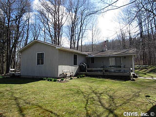 Serene setting with mature trees, nice lawn AND lake frontage one two sections of Eatonbrook Reservoir. Combining the best of both, this year-round home has a lovely & private wooded setting, but follow path & you also have lake living! With frontage on the "no motor boat" side, you have a peaceful deck to relax on, launch a kayak & more. On the big part of the lake, dock your motor boat for full-on lake fun. The house features one big LR/DR space with new gas stove to warm you up, a nice kitchen with breakfast nook area, remodeled full bath, and two BR. Two decks overlooking the yard, too!