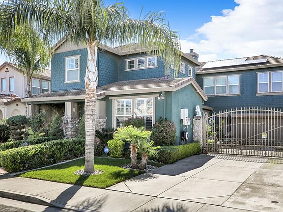 Nestled in a quiet cul-de-sac, this 2-story home has impressive curb appeal, and a beautifully gated courtyard. 2,945 sqft of living space, featuring 4 bedrooms and 2.5 bathrooms, this home provides plenty of room for everyone. The 3-car split garage adds convenience, the formal living and dining rooms, along with a cozy family room with a fireplace, create an inviting atmosphere for gatherings. The kitchen, seamlessly connected to the family room, features granite countertops, an island, walk in pantry, stainless steel appliances, and a breakfast nook. The primary bedroom offers a sitting area & an indulgent bathroom with a bathtub, dual vanity sinks, a walk-in shower, and a walk-in closet. Outside, unwind in the beautifully landscaped backyard, adorned with various flowers perfect for gardening, barbecues, and entertaining. Walking distance to the Tracy Sports Complex and parks, this home blends comfort w/ convenience. Best of all, with solar power, you'll enjoy significant savings on utilities, and w/ no HOA, you'll experience freedom and pride of ownership!