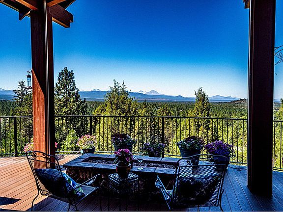 Best Views in Bend!!! You can't pass up the opportunity to see these views! This home was designed to showcase the Cascade Mountain Range from all the living spaces. Imagine cooking or dining while taking in the Three Sisters, or relaxing by the fireplace with Mount Bachelor in the distance.  If you want to get closer to the views, the covered deck offers heaters and a large fire pit to relax the evenings away. The main floor has gorgeous wood cabinets and warm Acacia flooring, with the Luxurious Primary Suite and two additional offices or bedrooms.  Downstairs, you'll find two additional bedrooms, a family room, and an exercise room.  And don't forget the awesome amount of storage. This home has it all (heated driveway, Three-car garage, accessible living, generous half-acre lot) and is located within a short distance to all the Westside offers (Restaurants, Shops, Schools, Trails, Golf, Tennis). Come visit this Awbrey Butte paradise, and experience summer living at its best!