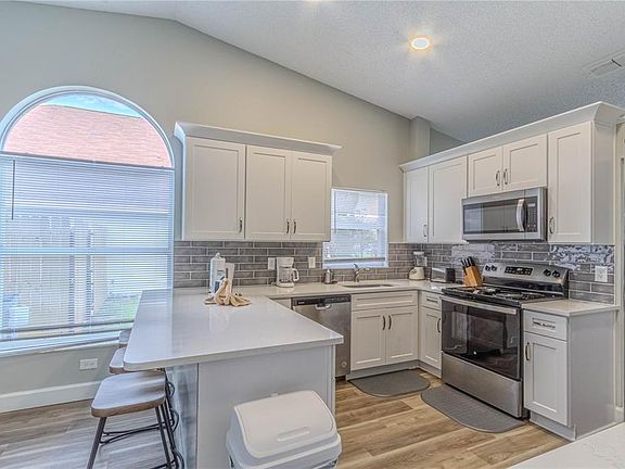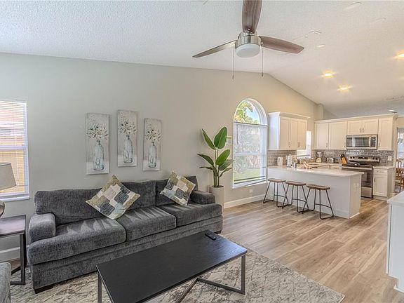 Experience the best of Florida living in this stunning three-bedroom, two-bath home, nestled in the sought-after Lindfields community. The meticulous pride of ownership is evident from the moment you step onto the manicured lawn. Inside, a bright and open floor plan is bathed in natural light, thanks to vaulted ceilings and multiple skylights. Gather with friends and family in the expansive living and dining areas or the gourmet eat-in kitchen, which features modern quartz counters, stainless steel appliances, and a breakfast bar. From the comfortable family room, step out to your private, screened-in lanai and take a dip in the free-form pool. The tranquil primary bedroom suite includes a walk-in closet and an elegant en-suite bathroom with a garden tub and separate shower. Two additional bedrooms are tucked away in a split-floor plan for privacy. Offered mostly furnished and with no HOA, this home is a turnkey opportunity for a primary residence, second home, or profitable vacation rental. Its unbeatable location is just minutes from world-class theme parks, dining, and shopping.