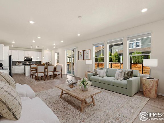 Welcome to this beautifully designed better-than-new multigenerational home featuring a fully attached one-bedroom suite with a private entrance-perfect for extended family, guests, or rental income. The suite includes a kitchenette with granite countertops, GE Profile stainless steel appliances (including a convection microwave/oven), its own washer and dryer, and a stunning walk-in shower with an integrated bench. Elegant white cabinetry with custom hardware, LED lighting with dimmers, and light gray LVP flooring complete this stylish space.The main home offers 3 spacious bedrooms, 2.5 baths, and an oversized 3-car garage with a taller door and abundant storage. The main level showcases 8-foot interior doors, LVP flooring, and an open, light-filled layout. The chef-inspired kitchen features GE Profile appliances, including a gas range, granite countertops in timeless gray and white tones, subway tile backsplash, and custom cabinetry with a trash pull-out and walk-in pantry. A built-in desk nook adds functionality and style.Upstairs, convenience meets comfort with an additional laundry room, a Jack-and-Jill bathroom featuring dual sinks and a large soaking tub, and a spacious primary suite with a tray ceiling. The four-piece ensuite bath offers a glass-enclosed shower, separate toilet room, granite countertops, and a walk-in closet. Upgraded iron stair railings add a refined, modern touch throughout.The home also includes a full basement with 9-foot ceilings, perfect for future expansion. Outdoors, enjoy a low-maintenance yard, full privacy fence, concrete paver patio, and complete irrigation system. Set alongside one of the community's walking paths, you'll come to love the neighborhood's thoughtful amenities - from the two pool areas, with waterslides and hot tub, to the 20 acre community park and open space. All this and NO METRO DISTRICT! This home combines modern comfort, multigenerational flexibility, and timeless design, making it a truly exceptional find.