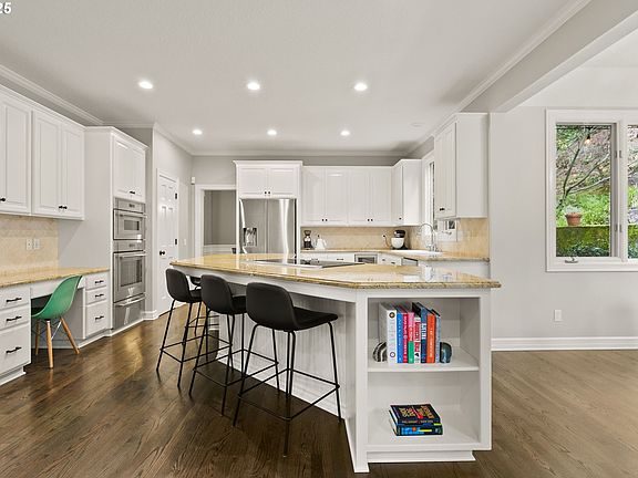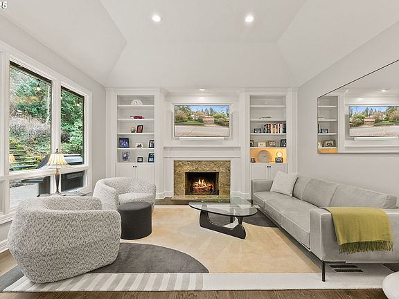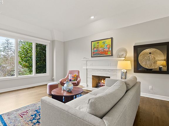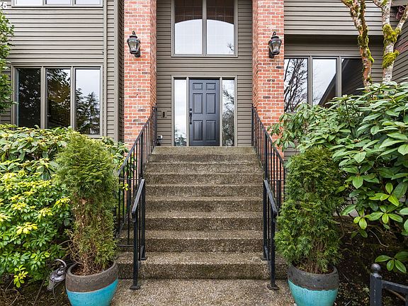 Handsome updated Westridge beauty one minute to Westridge Elementary and very near other top-rated Lake Oswego schools! Surrounded by natural beauty with picturesque planting options via Oregon's long growing season and summer soiree patios create an outdoor living haven. Rich hardwoods, high ceilings, and many recent updates! Delight in the grand staircase entry, picture-perfect formal living and dining rooms for hosting, and a welcoming kitchen/family great room with 2nd gas fireplace and entertaining patios. Thoughtfully updated with newer bathrooms, new Bosch induction cooktop in the gourmet kitchen featuring chef's choice Thermador appliances and generous seating island, new automated Hunter Douglas window coverings, and new bidets in the glamorous bathrooms. Spacious primary sanctuary suite with high ceilings, dual walk-in closets, and heated spa bathroom floors. Destination media or 4th bedroom with beverage cooler bar - perfect for game days! Executive office, bonus finished space + additional vast 30x9 finished storage room and 3 car epoxy floor garage with EV charger finish this wonderful refuge in the heart of desirable Lake Oswego!