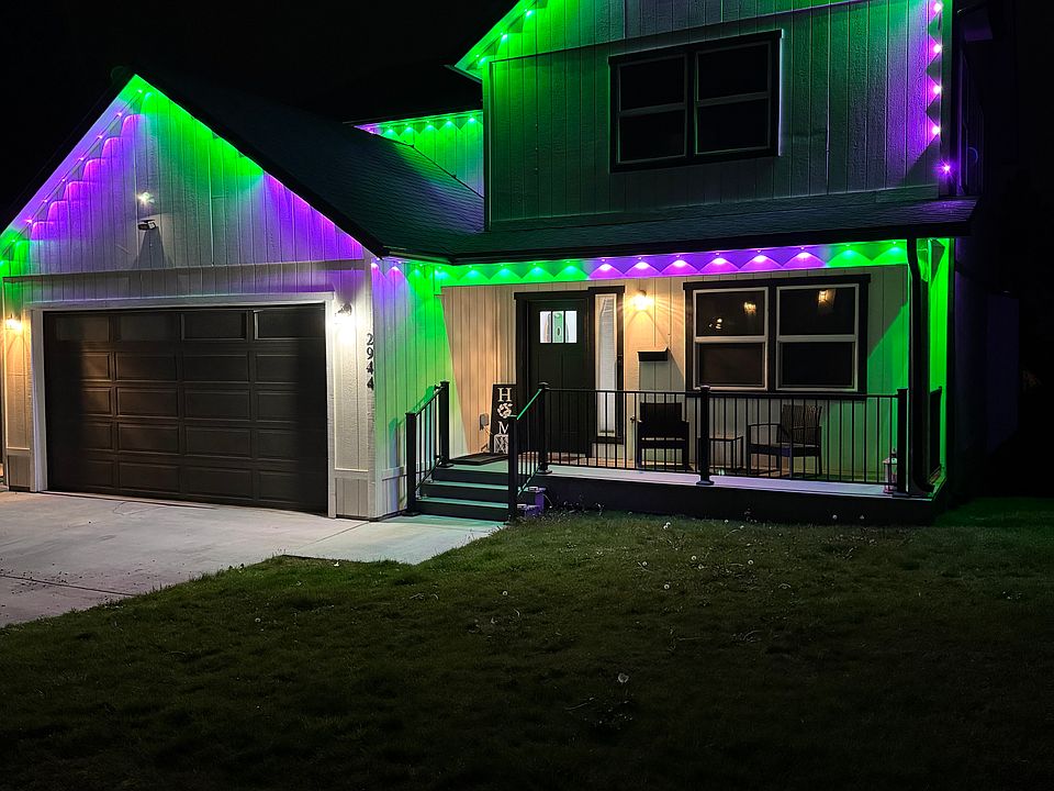 Inside, the home features a whole-home water softener, water filtration system, and a built-in security system for added comfort and peace of mind. The exterior offers permanent LED lighting, providing year-round curb appeal without the hassle of seasonal setups.