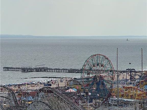 Stunning 2-Bedroom Apartment with balcony and direct magnificent ocean-view and historical Coney Island from the 22nd floor! Experience elevated coastal living in this fully renovated 2-bedroom, 1-bathroom apartment located on the 22nd floor of one of the most sought-after complexes in South Brooklyn. Boasting breathtaking panoramic ocean views, this unit combines modern elegance with high-end finishes throughout. Step into a bright and spacious open-plan living room/ kitchen area that greets you with stunning views from every angle. The open-concept kitchen is equipped with premium stainless steel appliances, sleek shaker-style cabinetry, and a beautiful quartz countertop and breakfast bar — perfect for both entertaining and everyday living. A separate dining area, adjacent to the kitchen, leads to a 90 sq ft balcony. You can enjoy spectacular fireworks shows every Friday in summer from your front seats! The master bedroom includes a walk-in closet, while the second bedroom is equally spacious and ideal for guests, a home office, or family living. The bathroom is renovated with modern fixtures and beautiful tiles All closets are built-in with custom shaker doors. Enjoy morning coffee or sunsets from your private balcony overlooking the ocean. Low maintenance includes all utilities and real estate taxes (a/c supplemental fee). Residents of this popular well-maintained complex have access to a range of conveniences such as 24 hours live security with surveillance cams, vending machines, Amazon boxes, parking, proximity to best bargain shopping like NetCost Market and KeyFood, boardwalk, beaches, trains to city, buses and famous Coney Island with its historical Astroland, cafes, restaurants and NYC Aquarium.