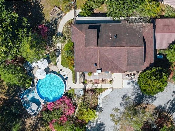 Unlike anything else available in Daphne, this exceptional 4+ acre property with NO HOA offers unparalleled privacy in a superb location. The spacious 3,863 sq. ft. Cypress home features 5 bedrooms and 4.5 baths, designed for comfort and entertaining. Open living area with abundant natural lighting, large Stone and Brick fireplace with an oversized hearth, Gourmet kitchen with walk-in pantry, breakfast bar, gas stove, quartzite counters, and a stainless-steel-top island. Crown molding throughout, oversized laundry, and a corner sunroom featuring spectacular views of the property. Generous primary suite with his-and-her closets, en-suite with double vanities and an all-in-one Spa-Tub and Shower. Upstairs are two additional bedrooms, a landing and a full shower bathroom. Represented as bedroom #5 is a 900 sq. ft. studio apartment – ideal for a private in-law space, guest area or rental income. There is an "additional 1,200 sq. ft." walk-out garage basement that is a blank canvas ready for storage, or your conversion to make a dream theater, gym, or extra living space. The property has 3 fenced areas, one of which includes a Sparkling pool, oversized pool deck and an inviting patio for effortless outdoor hosting. The grounds feature a sandy bottom, gentle flowing Dolive Creek, with a serene hammock area. There is ample parking: a drive-in garage, a 25x26 covered carport, and a 12x30x12 covered Boat or RV carport. Brand new AC (Sept 2025), fortified roof (insurance-saving), updated plumbing and lighting, tankless gas water heater, and a whole-house generator. More photos to come. Call for your private appt. Buyer to verify all information during due diligence.