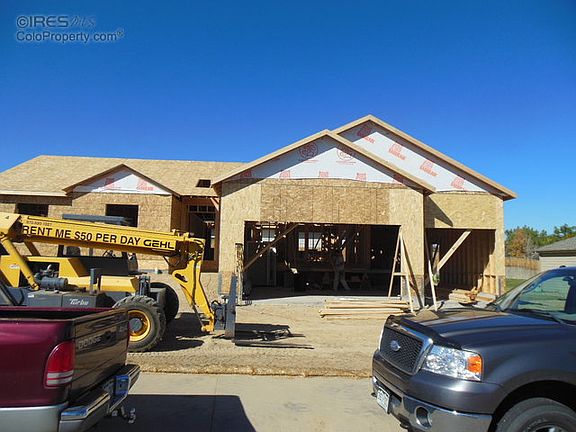 A great new home with a huge garage, Alder cabinets and trim, granite counters, ss appliances, hardwood floors and many upgrades. Nice corner lot, partially fenced, mountain views of longs peak out of the office/bedroom. We will take contingencies, call for details.