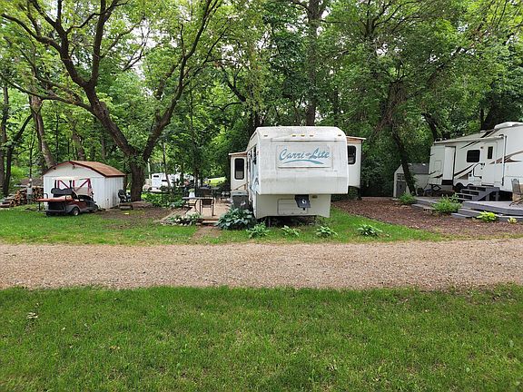 Fun opportunity to get your own camping and resort lot for an affordable price! Includes deck and shed and access to so many more shared amenities (in-ground, heated swimming pool, lake access and docks, mini golf, animal park). Check us out, the summers will never be so much fun! Bring your own RV or perhaps we'll find one for you here! Great parking for this site. Upper area is parking pad and deck and shed, then walk down to lower (private) area for firepit and other potential area to be developed.