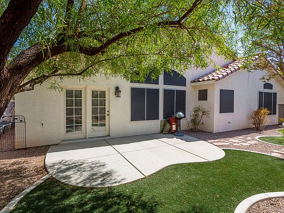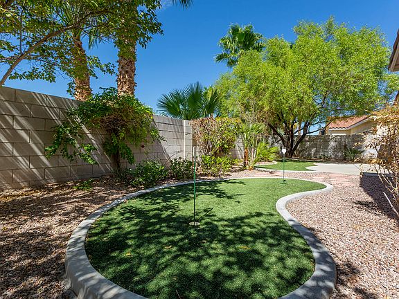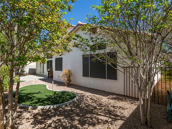 Remodeled home with tile floors throughout, custom kitchen open to family room with granite counters, back splash, under cabinet lighting, island, stainless steel appliances and breakfast nook. Family room with media niche & fireplace. Formal living & formal dining with vaulted ceilings. 3 beds + office/den. Master bed with separate tub & shower, 2 closets & 2 sinks. Low maintenance yard with patio and putting green. Upgraded lighting throughout, solar screens and much more. All in gated Majestic Hills neighborhood.