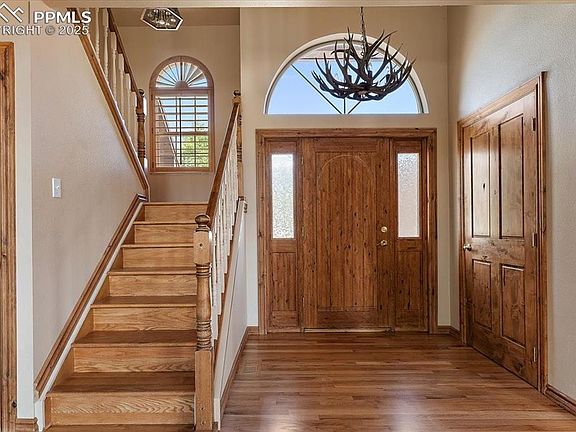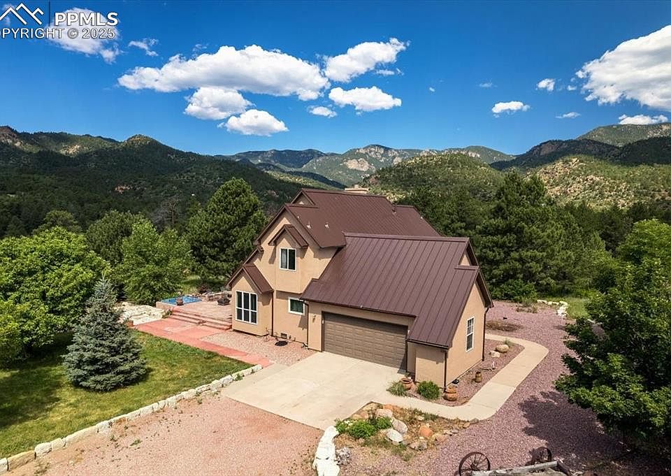 Welcome to your private mountain sanctuary just 15 minutes southwest of Colorado Springs. Nestled in a serene rural mountain community off Highway 115, this 35-acre estate offers the perfect blend of luxury, seclusion, and accessibility—with sweeping 360-degree views of the surrounding mountains, striking rock outcroppings, and endless sky. This custom 4-bedroom, 3-bathroom residence provides over 3,000 square feet of finely crafted living space. Step into the vaulted great room featuring a showstopping stone fireplace and rich hardwood floors, where every window frames a postcard-worthy view. The main level includes 2 spacious bedrooms, one with walk-out access to the expansive patio—ideal for stargazing under the Milky Way or enjoying sunrise coffee with deer, hummingbirds, or the occasional bobcat as your backdrop. The primary suite is a true retreat, complete with dual closet rooms and a luxurious five-piece bath. Every detail has been considered for comfort and elegance, making this home equally suited for full-time living or a peaceful getaway. Check out the small dry cabin! Equestrian lovers will appreciate the well-appointed horse barn with water, stables, hay barn, round pen, and outdoor riding arena. Hobbyists and adventurers will find endless space in the over-sized detached garage, RV pad with dedicated electricity and cistern, and a large outbuilding for tools, vehicles, or recreational gear. A large chicken coop adds to the charm. The use of ground water from this well is limited to ordinary household purposes inside 3 single family dwellings, fire protection, the watering of poultry, domestic animals, and livestock on a farm or ranch, and the irrigation of not over one ( 1) acre of home gardens and lawns. Despite its tranquil setting, this property is just a short drive from Ft. Carson, Colorado Springs. With mostly level, cleared land and exceptional natural beauty in every direction, this is more than a home—it’s a lifestyle.