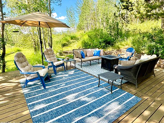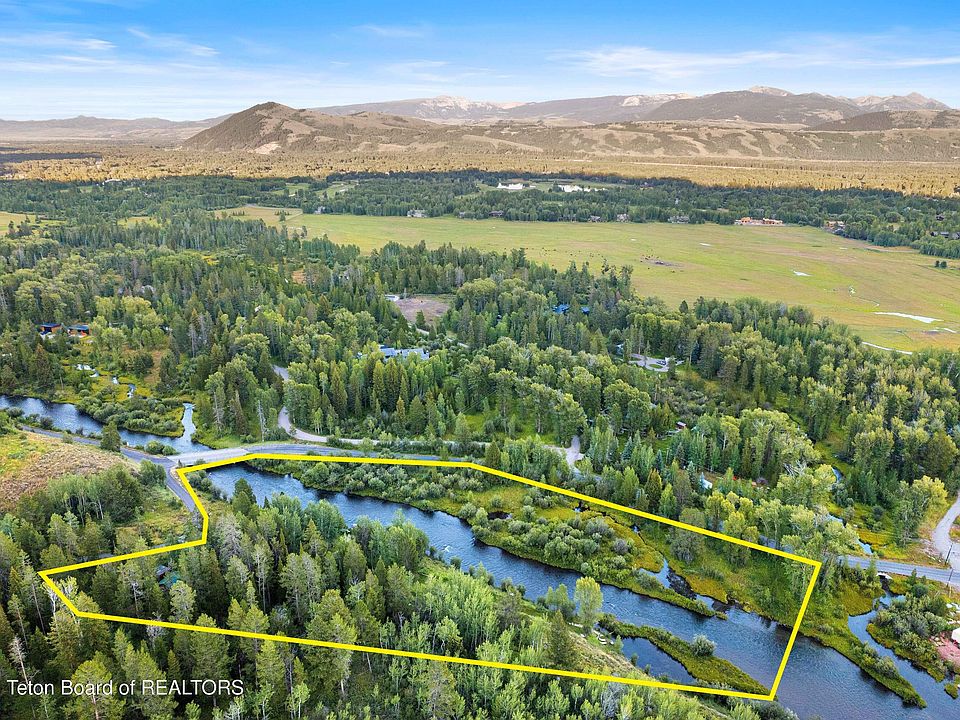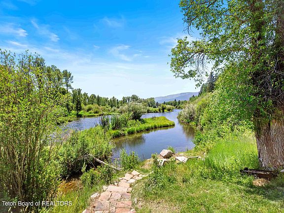 FISH CREEK FRONTAGE, WILSON, WY. This parcel is comprised of nearly 6-acres with unmatched Fish Creek frontage on both sides, and a private 'swimming hole' on the southern edge of the property. The 3-bedroom, 2.5-bathroom 'cabin style' home has incredible elevated views over Fish Creek, and it includes expansive decks, large windows and a charming appeal throughout. The interior spaces and exterior truly harmonize as one living unit. This location along the creek and the national forest edge provides a unique ecosystem full of abundant wildlife and birdlife throughout the year. The ample fishing access can be yours alone, or you can choose to share with friends during your BBQ gatherings. This setting is very difficult to replace anywhere in Teton County, WY. Please come visit.