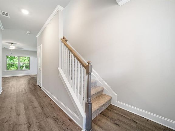 Beautiful Craftsman Home in the Highly Rated Seckinger High School District - known for being the first AI-themed high school! Built by LHA Homes LLC, this 4BR/2.5BA home offers a thoughtful layout, quality finishes, and a convenient location in one of Gwinnett County’s most desirable school zones. The main level features an open-concept design with a spacious kitchen including white cabinetry, granite countertops, a walk-in pantry, and a large center island. The kitchen flows into the family room, creating a great space for everyday living and entertaining. A set of French doors opens to a private flex room, perfect for a home office, playroom, or den. Garage entry leads directly into the kitchen for added daily convenience. Upstairs, the generous primary suite includes high ceilings, a tiled shower, granite double vanity, and a walk-in closet that connects directly to the laundry room (washer and dryer included). Three additional bedrooms and a full bath complete the upper level. Other features include a built-in mudroom with coat hooks, smart home security system, and a covered back patio with ceiling fan overlooking a level backyard, which is ideal for outdoor gatherings or quiet evenings. Exterior includes durable fiber cement siding with a brick water table. HOA covers lawn care, landscaping, and tree maintenance. Neighborhood amenities include walking trails and a dog park. Prime Location: Just minutes to Mall of Georgia, Lake Lanier, I-85, I-985, and everyday shopping like Kroger, Walmart, and Publix. Don’t miss this opportunity to own a move-in ready home in the Seckinger High School district—an area known for its innovative programs and strong community appeal.