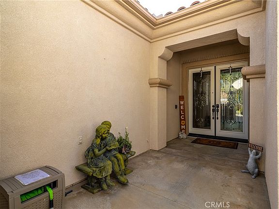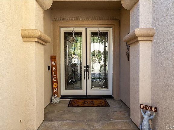 Experience resort-style living in this beautifully upgraded single-story home, perfectly situated in one of Menifee’s premier active-adult communities. A charming courtyard entry and double custom leaded-glass doors set the tone for the elegance found throughout.