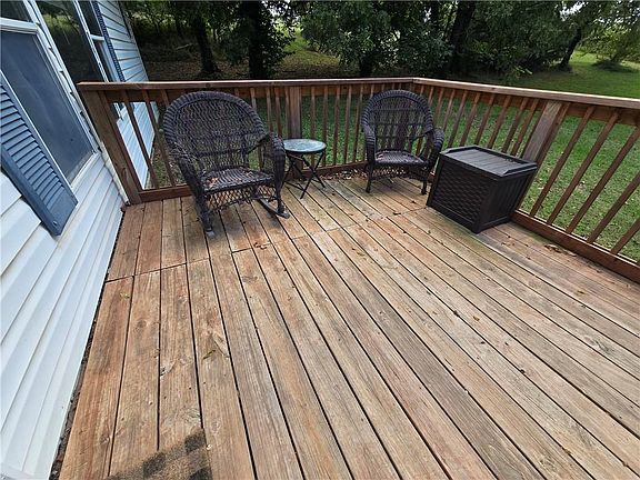 You asked for a secluded home, here it is! Tucked back in a beautiful setting of trees sits this 3 bedroom, 2 bath home on 5.95 +/- acres with two 2 car garages. As you walk up to the front door, you'll notice a new wood deck with furniture for sitting and drinking your morning coffee. As you walk into the large living you will see the wood burning fireplace for those cozy evenings. The master bedroom has a walk-in closet and a master bath with an oversized jacuzzi tub, 2 separate sinks and vanities and a shower over the tub. The spacious kitchen has black double sink with matching appliances that stay with the property. Did I mention the huge basement that features a 4th non-conforming bedroom with a closet but no egress window? The new large wood deck on the back side of the house is perfect for entertaining or just sitting and relaxing after a long day. Come take a look, you will be pleasantly surprised.