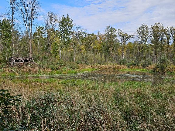 already set with two blinds, including a massive 6×16 blind for group hunts or all-day sits. For deer, two established stands overlook proven travel corridors along historic trails—including the old Vasaloppet trail, which you could explore leasing back if desired. Tune your setup at the 100-yard shooting range, then finish the day along Bean Brook Creek, where summer brings bullheads, rock bass, crappies, perch, northerns, sunfish, and minnows.