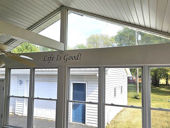 CUTE house on the edge of town with sunset views off the front porch! Nestled at the end of a street and the start of a cornfield, this one feels like country living! This cute 4 bedroom, 2 bath split floor plan RANCH home features county taxes, Winnebago Schools, a fabulous sunroom, 3-car HEATED and insulated garage, laminate flooring, updated baths and MORE! Welcome to quiet small town living! Welcome Home!