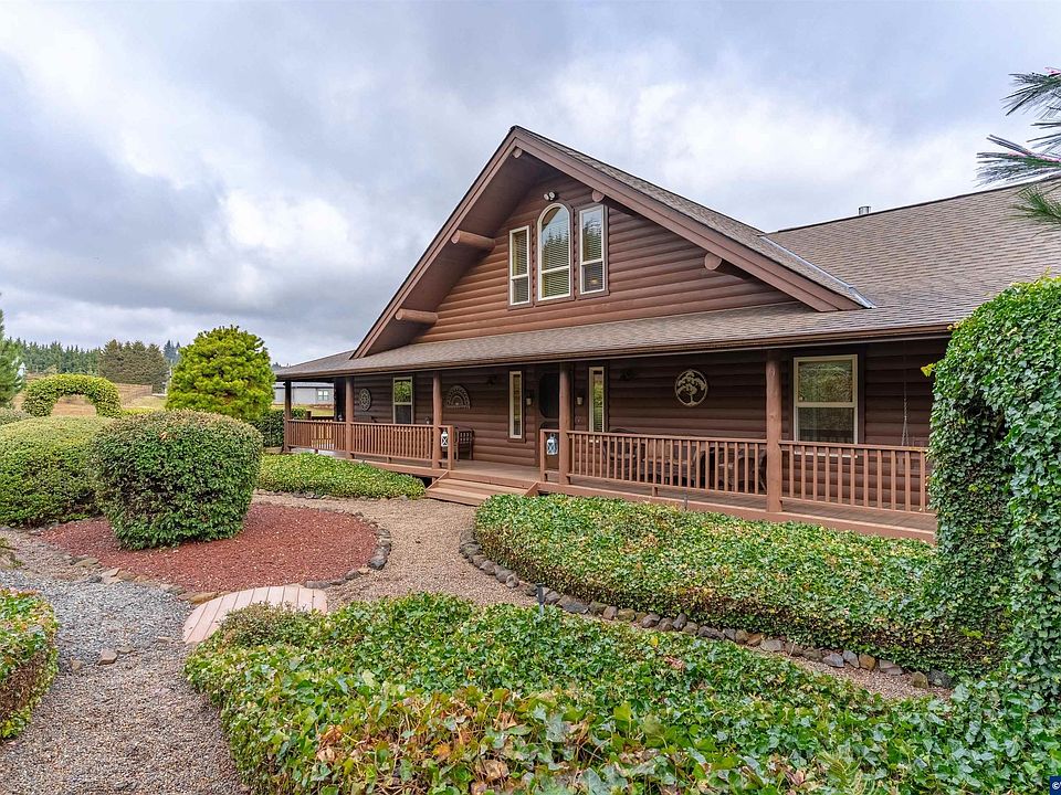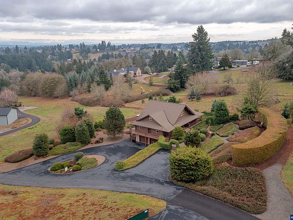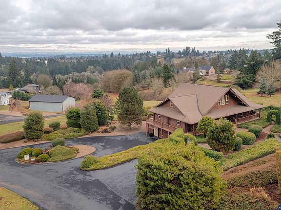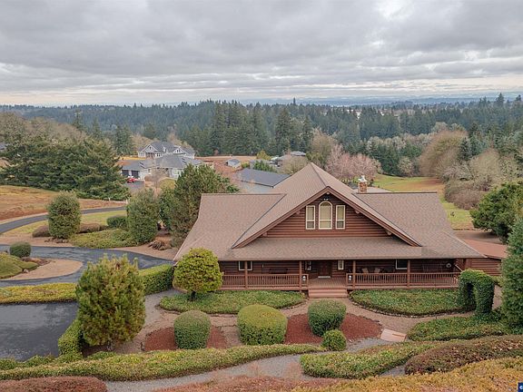 Amazing "one-owner" custom LOG & stone home on 2 acres in prime South Salem location. Views of Mt Hood to Mount Jefferson & the Cascade foothills. Meticulously designed, built & maintained. 3 bdrms, 3 baths, stone fireplace, wood floors, custom woodwork/doors, central vac, oversized garage, RV parking, outbuilding/shed, fire pit, etc. New asphalt driveways in '24, new oven '24, new LVP in basement '23, new roof '22, updated HVAC '20, new countertops '19, oak floors & bathroom floors '19. 350' well w 19gpm.