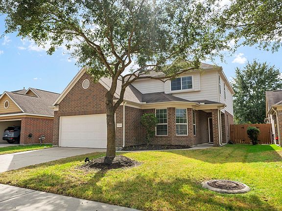 Charming 4-bedroom, 2.5-bath home on a quiet cul-de-sac. This home has one of the most desirable floor plans for this builder with brand new carpet and paint throughout. Energy features include Double pane windows, radiant barrier decking in attic and North/South exposure. The very spacious kitchen has been upgraded with taller cabinets, granite countertops, 5 burner gas range, farmhouse sink and tile floors. There is a breakfast nook and formal dining. Open floor plan with large family room and electric fireplace. Secondary bedroom down with ensuite half bath. Could be a great office space as it overlooks the lush backyard. Primary Bed plus 2 extra bedrooms upstairs and 2 full baths, plus game room. Primary has 2 walk in closets. Backyard has an extra large covered patio, Front of the home has gutters. Great location near schools, parks, shopping and major highways (Grand Parkway, Hardy Toll Rd. & I-45) Call for your showing today!