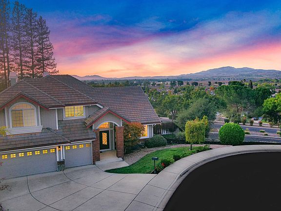 Tucked away at the end of a quiet cul-de-sac, this beautiful (EAST FACING) Vintage Heights semi-custom home welcomes you with a grand iron door that sets the tone for the style and sophistication within. The spacious 2837 sq. ft. floor plan features cathedral ceilings, spacious living room and formal dining, tile floors, a sweeping iron staircase, and abundant natural light. The heart of the home is the wonderful kitchen—complete with stone counters, large center island, pantry, custom cabinetry, and a charming breakfast nook overlooking the backyard. It’s the perfect gathering space for morning coffee or lively evenings with friends. The inviting family room opens to a serene backyard retreat featuring a pavered patio and a sparkling pool—ideal for summer entertaining. Elegant primary suite offers sweeping views of Mt. Diablo and a spa-like bathroom with a walk-in shower, large tub and generous closet space. There is an open landing that's perfect for home study. Spacious secondary bedrooms. Located in one of Pleasanton’s most sought-after neighborhoods, this home combines luxury, comfort, and an unbeatable location—close to top-rated Pleasanton schools, parks, and the vibrant downtown lifestyle Pleasanton is known for. Close hiking trails and wineries