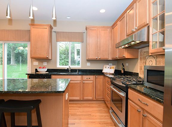 Impeccably maintained with beautiful decor, hardwood flrs, open floor plan, expanded formal dining rm, Family Rm w new built-in bookcases and electric fireplace, Kitchen w ample cabinets w pull out shelves, granite counters, heat light and new stone backsplash over stove, laundry w sink and stackable washer/dryer, spacious Master Suite, gorgeous finished bmt with game room, bedroom and bath! Backs to Woods! Private!