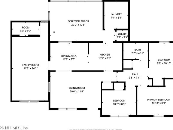 Updated and move-in ready single family home with no HOA & a price that can't be beat! Solid concrete block home has a new roof (2026) with transferrable warranty, vinyl & tile flooring, freshly painted interior and 2022 electrical panel. Bonus room with walk-in closet could be a 4th bedroom, office, family room, or separate owners suite by adding an ensuite bathroom ($10-$12K)with easy connection to septic system. Enjoy the eat-in kitchen, good size living room, & 3 bedrooms. The kitchen back door leads out to a covered screened porch and connecting laundry room. The quiet, lush backyard has preserve behind.