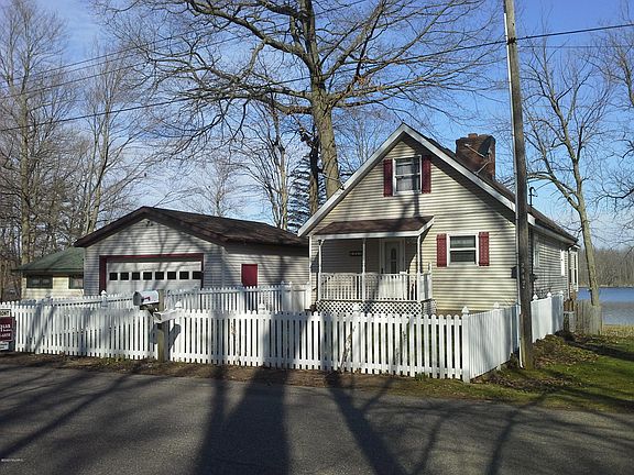 Well maintained home on Wetmore Lake w/70 ft of private frontage. The view is spectacular w/no houses on the opposite side of the lake. This home has an open floor plan w/a spacious living room, a wood burning fireplace to take the chill off, a 4 season room surrounded w/windows, a bright kitchen & dining area all w/a Great view of the lake. One bedroom w/brand new carpet, a full bath & laundry complete the main floor. Upstairs there are 2 spacious bedrooms, 1 on the lake side. The full walk out basement has a family room w/a fireplace, storage area & enclosed deck area. The exterior features a 2 car garage, 2 sheds, patio, privacy fenced backyard as well as a fenced front yard. Updates include a 2 yr old roof, light fixtures, some fresh paint, & newer stove & refrigerator.