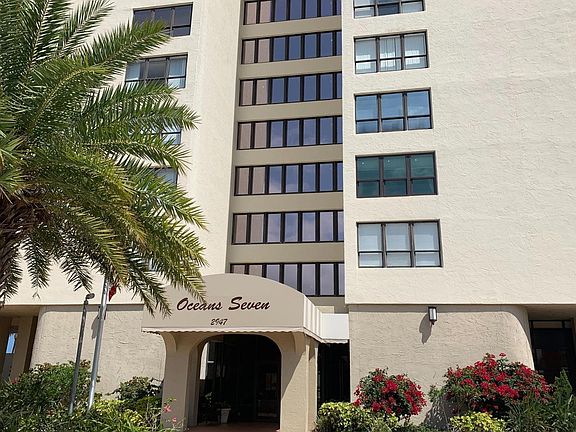 IDEAL WINTER RENTAL! OCEANFRONT CONDO. Two Bedroom, Two Bath Condo located in the Oceans 7 Condominium. SW Exposure, beautiful ocean and river views! GREAT SUNRISE, SUNSETS. Fully furnished. Rent includes water, cable TV and access to the pool and the parking garage. Each bedroom has its own full bathroom! Rent for 6 months minimum up to 1 year. Wrap around balcony. Laundry on each floor. Community pool, gym and social room. Zillow applications get faster response. Sorry no pets are allowed.