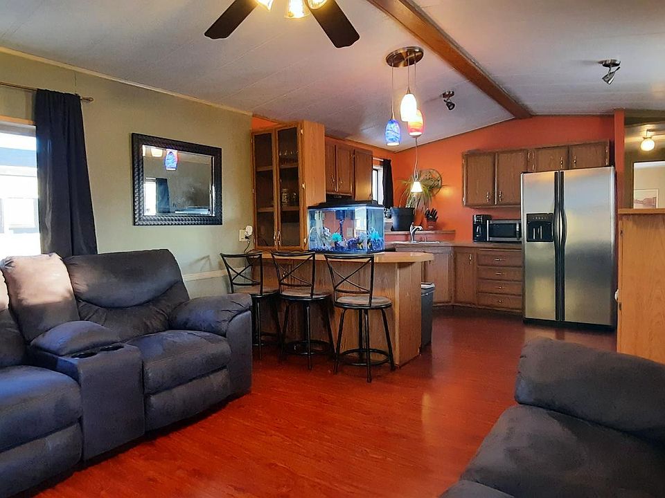 Welcome home to this charming and well-kept 3-bedroom, 2-bath manufactured home in a peaceful and affordable mobile home park. Bright, clean, and beautifully maintained, this cozy home with vaulted ceilings features newer windows and flooring, a beautiful, updated kitchen, and a spacious layout perfect for comfortable living. The primary bathroom offers a large relaxing jacuzzi tub, ideal for unwinding at the end of the day. Enjoy community amenities including an inviting pool and basketball court, all in a quiet, friendly neighborhood you'll love coming home to.