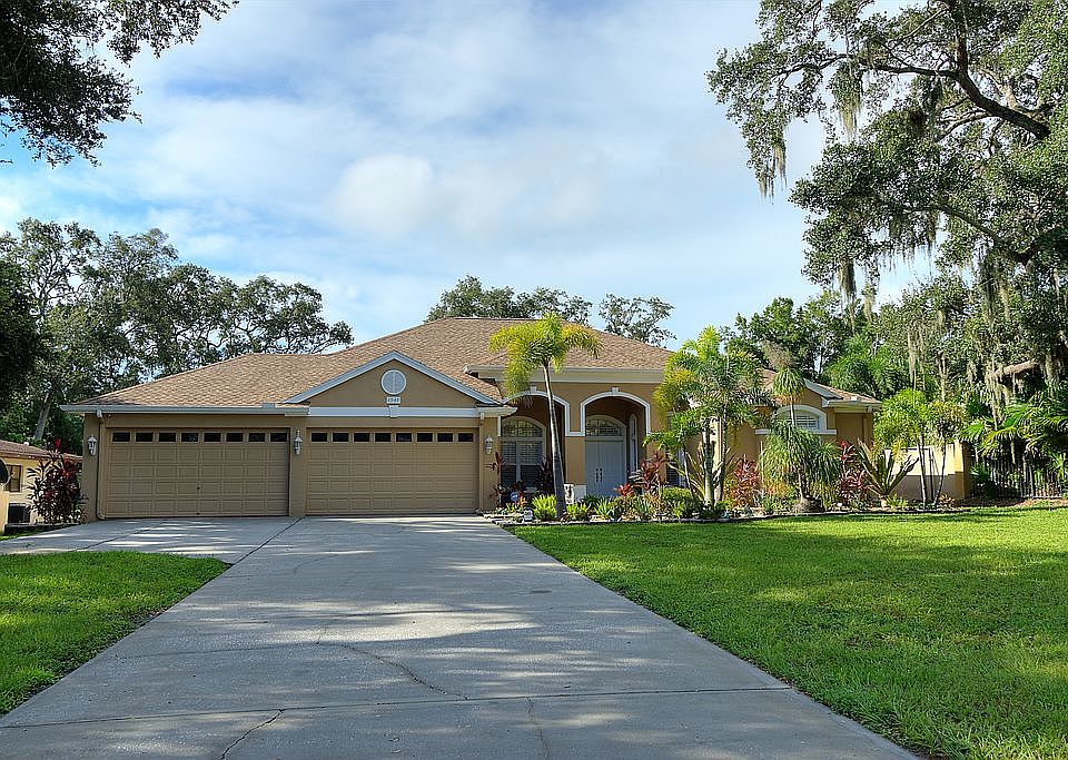 Price just reduced!!! This is a spectacular 4-bedroom, 3-bathroom, 4-car garage home located in Clearwater! Just a few blocks away from the charming downtown area of Safety Habor! This home has been beautifully decorated and is extremely well-maintained. The curb appeal and lush landscaping are simply spectacular! This home is located on an oversized half an acre lot. This home is extremely light and bright with a triple split layout. When you enter this home you will immediately notice the double-tray ceiling over the formal living and dining room area and the high ceilings. The spacious master bedroom (14 x 17) has large his/her walk-in closets, and an en-suite bathroom. The master bathroom showcases a travertine walk-in shower, a garden bath, his and her sinks, American Standard fixtures, granite countertops with under-mount sinks, custom-made solid wood cabinets with soft-closing drawers. The office has glass french doors and wood looking tile flooring... just stunning!!! This gourmet kitchen has newer GE stainless steel appliances, and a granite-topped breakfast counter and can seat more than 4. This chef's kitchen has solid wood cabinets with granite counters and plenty of room for all your pots and pans. The family room (21 x 16) showcases a lovely double wood-burning fireplace. The back billiards room can be used as a mother-in-law suite, game room, or exercise room. The kitchen, breakfast nook, and family room areas have great views of the gorgeous 0.5-acre backyard area and pavered outdoor patio. It is the perfect place for the family to play and the dogs to run. This home features gorgeous lighting fixtures throughout the house, neutral colors, 3.5" plantation shutters, NEW AC, brand new roof (8/2020) and so much more... This home won't last long! Virtual tours upon request!
