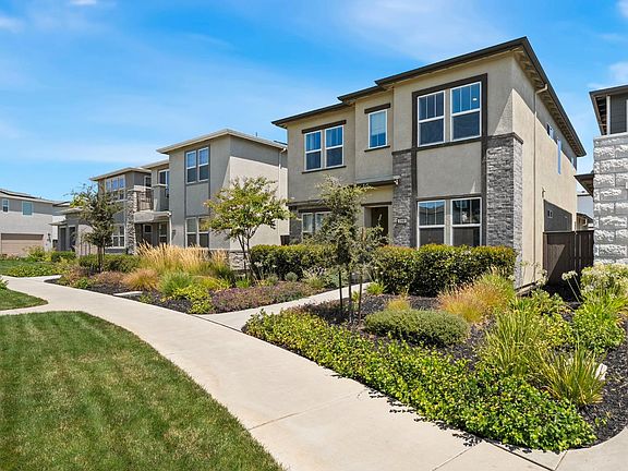 Welcome to this stunning 2022 Beazer home in Westward at The Cove an Energy Star Certified community with resort-style amenities including a clubhouse, pool, fitness center, parks, basketball courts, and bike/walking trails. Featuring 4 bedrooms PLUS a spacious flex room (office or potential 5th bedroom) and 3 full baths, this home showcases over $60,000 in premium upgrades and exceptional energy efficiency with owned SunPower solar. The light-filled open floor plan boasts luxury Lifeproof vinyl flooring, a chef's kitchen with granite counters, Whirlpool stainless appliances, 5-burner cooktop, low-profile microwave, apron sink, pantry with sliding drawers, and cabinets to the ceiling. Downstairs offers a bedroom, full bath, and the versatile flex room. Upstairs, the oversized primary suite features a soaking tub, separate shower, dual sinks, walk-in closet, and private toilet room. Additional highlights include a paved low-maintenance side yard with BBQ gas stub, upgraded carpet and padding, upstairs laundry with sink and cabinetry, Ring cameras, EV prewire, tankless water heater, and extra insulation for quiet living. Enjoy easy freeway access, nearby shopping and dining, and just minutes to downtown Sacramento, the river, Golden 1 Center, and Sacramento International Airport.