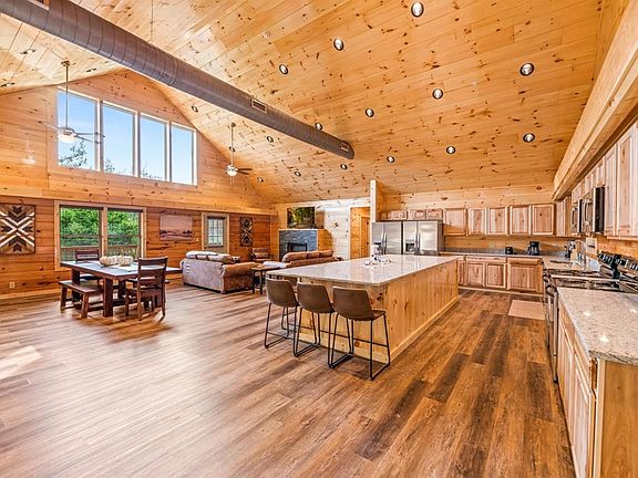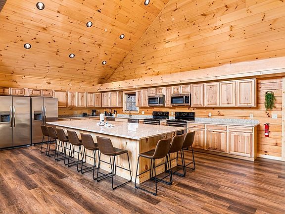 Investors - huge cash flow and tax savings opportunity! $213,645 annualized gross income. Don't miss your chance to secure this incredible cabin before the holidays! 1031 Exchange and/or a chance to secure 80% bonus depreciation this year! Furnishing bonus depreciation estimate of $150K. Only 1.2 miles from the Parkway, and the 3 minute drive is smooth and easy - no unpaved, steep, or winding roads. Close proximity to every attraction! Built in October 2022, this fully furnished cabin comfortably accommodates 26 guests. Sleeping arrangements include 6 spacious king bedrooms, two bunk rooms with 4 twin beds, and three queen sleeper sofas. Each bedroom has a private full bath. There are 4K Roku TVs in every room including a 86” TV in the theater room. Game room includes pool table, arcade games, shuffle board, foosball table. The massive DOUBLE KITCHEN provides ample space for cooking with two of every appliance. State-of-the-art Wi-Fi system provides fast internet in every corner of the home, including outdoor areas. Enjoy the mountain views from two levels of string lit decks. The upper level deck has a grill, and the lower lever has a TWO large hot tubs. Property is on city water and sewer, which is a HUGE amenity in this market. Unlike many of the cabins on wells, this property will never run out of water or cause guests to complain of water smelling of sulfur. Guests will have plenty of parking places in the large designated lot. Durable, low-maintenance metal roofing tops off this incredible property.
