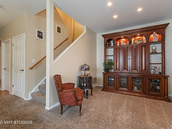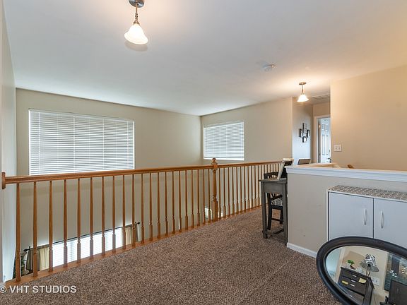 Come and check out this incredibly spacious 2-bedroom, 21/2-bath home with 2-car garage. Spacious loft for 3rd bedroom/office/storage. Impressive, 2-story living room's high windows filter natural light into the adjacent dining room. Tall ceilings & large open rooms are softened by the recent paint and carpeting using current neutral colors. Family room is open to kitchen, which boasts 42-inch oak cabinets, including large pantry, great for extra storage, island with breakfast bar, and new flooring. Upper-level: large master bedroom with master bath that has a tiled floor & two walk-in closet. Guest bath, 2nd bedroom, and loft. Patio backs to an open field. Stunning end-unit superior location, near the rear of desirable Harvest Hills, allows for a more peaceful & safer environment due to low traffic volume. Community park has playground, fields, bike path, & tennis courts. Close proximity to shopping/restaurants/theaters & Metro. District #303 schools.