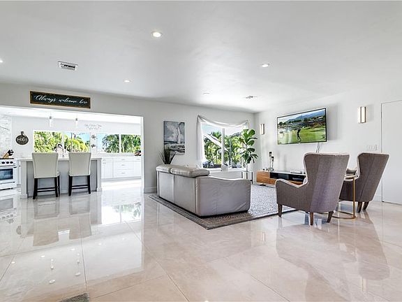 Lighthouse Point Boaters Paradise! This recently remodeled 3 bed 2 bath and 2 car garage home is move-in-ready located at the exclusive area of Lake Placid at Lighthouse Point. A split floor plan separates the primary bedroom from the two guest rooms. The home features Italian porcelain tile throughout its large open spaces, a new chef's kitchen with wood cabinets, Italian imported marble counters, large stainless steel appliances, and a gas range. All new impact windows and doors, custom impact garage doors, new digital sprinkler system, new travertine patio, and new landscaping. Just bring your boat and enjoy a plunge in the salt pool in this sunny South Florida home.