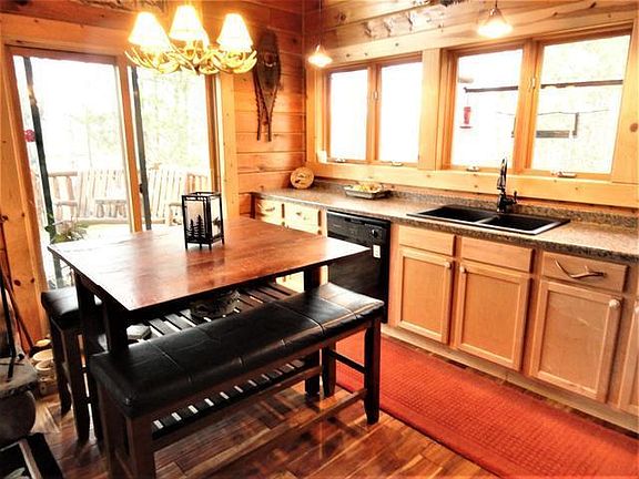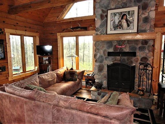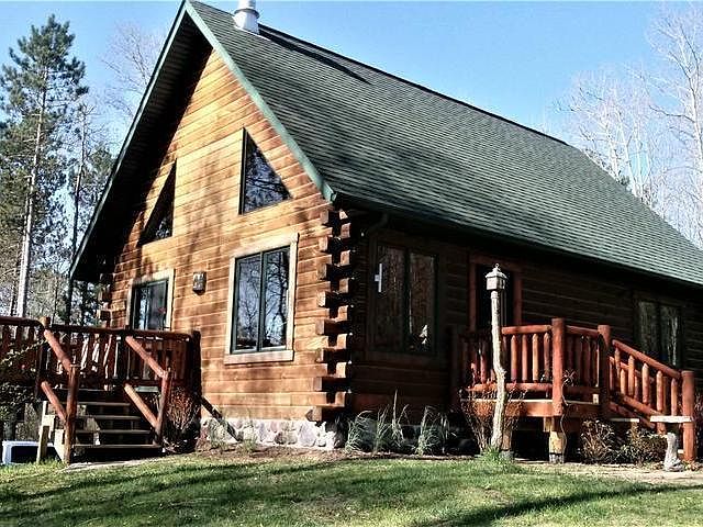 TOMAHAWK RIVER PERFECTION! Well wooded 12+ acre privacy parcel with 328' of waterfront. 2004 Golden Eagle square cut full log chalet cabin or home, 2 bedrooms plus full loft, exposed log beams, vaulted ceiling, open concept living, woodburning Heatilator stone fireplace, wall of eastern facing windows looking out to river, gorgeous acacia hardwood flooring on main level, heated tile floor in full bath, maple kitchen cabinets with antler pulls, appliances included, stereo surround sound with built-in speakers, patio doors from kitchen to 12x12 deck, 9' poured full foundation is insulated/drywalled with heated laundry area & direct access from exterior offering 2 garage stalls. Engineered floor joists, all sheeting nailed AND glued AND hurricane straps. Snowmobile/ATV trails right from your driveway, no trailering required. Build a boardwalk to the waters edge for fishing/boating/kayaking. Near 1000s of acres of public lands. Excellent location, low taxes, privacy at a great price!