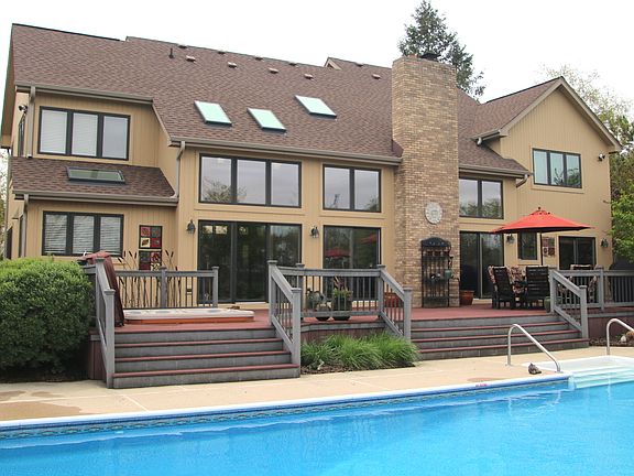 Exceptional, stunning home on beautiful cul-de-sac with inground pool backing to the 11th green in The Reserve of Stonebridge. Finest quality upgrades, including Brazilian cherry hardwood floors on first floor. Finest quality detailing throughout home. Inviting entry leads to living and dining rooms and family room. Entry view extends to the deck, pool and golf course. Kitchen includes custom cherry Ovation cabinets, SubZero refrigerator, Bosch dishwasher, Thermador double oven and cooktop, granite counters, island and dining table. Lovely wood trim in master bedroom, custom cherry cabinetry in all three baths with granite tops. Storage galore in master bath and hall bath. Large lot has ample space for additional uses. New roof and gutters, nine new skylights, garage doors and pool liner in 2014. Deck 2010, air conditioners 2011 and 2013, second floor furnace 2014, water heaters 2017. Inground sprinkler system, fabulous landscaping, wrought iron fencing surrounds pool.