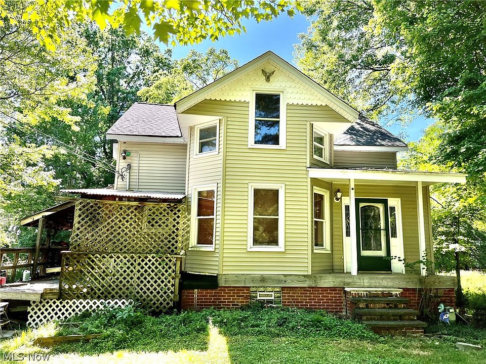 Nestled on a private 1.5 acre lot in Willoughby Hills, this 1920s Colonial has much to offer. The main floor of this home features a full bathroom, a spacious kitchen, a formal dining area, and a large living room with hardwood floors throughout. The upper level of this home has three bedrooms and an additional full bathroom. Additional features include a walkout basement, a porch, and a long, private 1.5 acre lot with the house set back from the road. This home is being sold AS-IS.