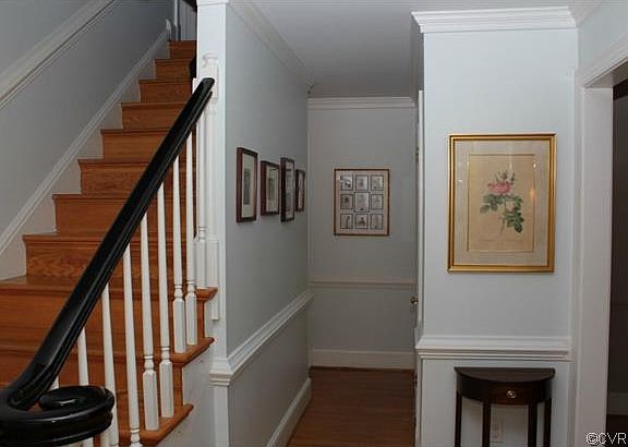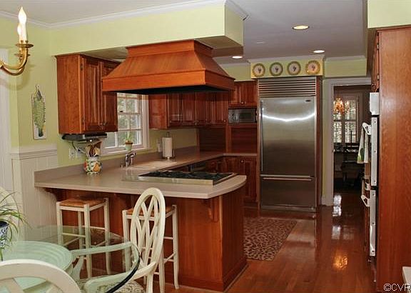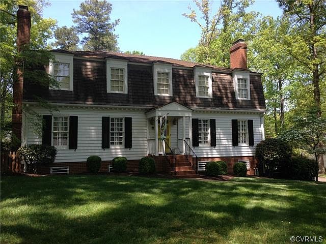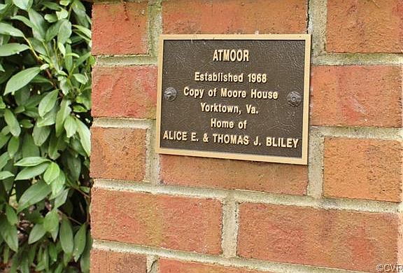 Perfectly charming home, Atmoor, modeled after the historic Moore House in Yorktown. Featuring an elegant foyer, hardwoods throughout, four fireplaces (2 with gas logs), and plantation shutters throughout main floor. Columns separate the banquet sized living and dining rooms and the beautiful sunny yard has a brick garden wall and privacy fence. Perfect for entertaining with a great flowing floorplan and sunny eat in cook's kitchen with commercial gas cooktop, cherry cabinets, stainless appliances including Sub Zero fridge. Large romantic master w/ fp has large dressing area and closets. 4 additional bedrooms each have large closets, and built in window seats. The huge bright rec room in the basement has fireplace, wet bar, extra storage and has recently been waterproofed. Convenient central location with easy access to all highways and bridges just around the corner from the James River, golf and tennis. If curb appeal and charm matter to you, DON'T MISS OUT!