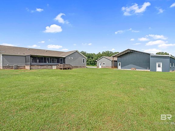 Discover 17 manicured acres in quaint Elberta, a farming community just minutes from the beaches of the Alabama Gulf Coast. Situated on the property are two dwellings. The first, a 2018 luxurious modular home with a detached custom 3 car garage and 50 x 48 metal building with power and plumbed for water, with height suitable for RV storage. The views from the grand front porch are inviting and unlike any other, with sunsets that are sure to make you slow down and soak in the beautiful surroundings. With 4 bedrooms, 2.5 baths and 2,900 sf, the modular home features a shiplap accent wall, new interior paint and boasts an open floor plan, along with an expansive screened in porch, perfectly suited for game days! Built in shelving, tile backsplash and bar top island complete the kitchen and living areas making them simply stunning. The primary suite is sure to impress with a plethora of closet space, separate tub and spacious shower. The metal building on concrete slab provides a way to capitalize storage needs with a multitude of build-out possibilities. The second dwelling is well maintained 2016 mobile home with 3 beds and 2 baths and 1,539 sf. Located within close proximity to schools, beaches, dining, entertainment and shopping, the location is ideal. Adjacent parcel with MLS #386594 also available for purchase separately. Buyer to verify all information during due diligence.