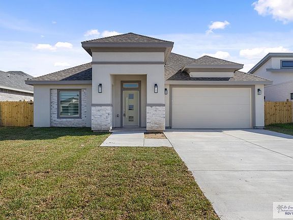 This charming new construction home features a huge, fully fenced backyard with stone landscaping, two trees, and lush grass in both the front and back. The added benefit of farther neighbors ensures extra peace and space. Inside, you'll find high-quality solid wood interior doors with elegant paneling, and a kitchen with full-height cabinets. The home is equipped with essential appliances, including a stove, fridge, dishwasher, microwave, washer, dryer and comes with a full curtain package for added privacy and style. With its spacious outdoor area and stylish finishes, this home offers comfortable living. Conveniently located near shopping centers, grocery stores, The Port of Brownsville, and SpaceX, it's the perfect place to call home. Schedule a tour today!