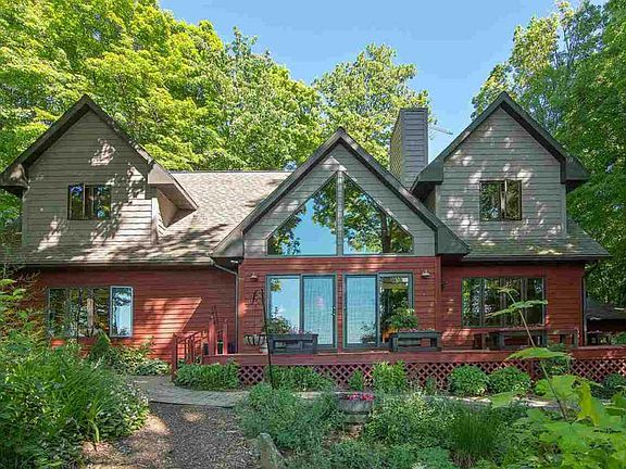 Beautiful waterfront property in southern Door County situated on almost 2 wooded acres. With stunning bluff views of the bay of Green Bay, this home boasts a rustic kitchen with granite countertops, 2-story lofted great room with stone wood burning fireplace, 6-panel doors, hardwood floors and wood trim throughout. Large first floor master suite with dual walk-in closets and windows facing the bay. Spacious 2nd floor guest suite with whirlpool tub and walk-out deck access. Other features include 1st & 2nd floor laundry, deluxe detached 3 stall garage, & an abundance of beautiful landscaping.